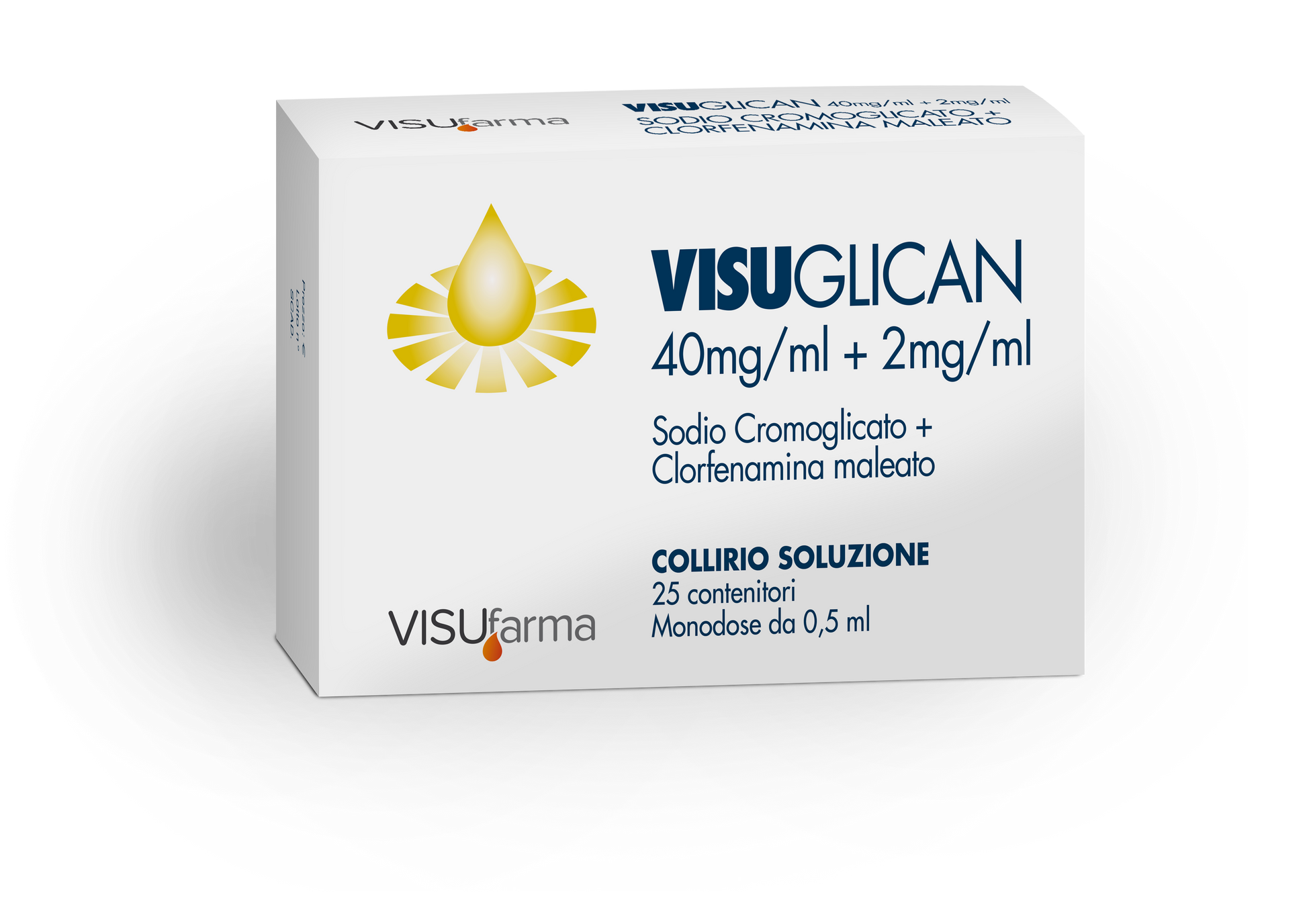 VISUGLICAN appartiene ad un gruppo di farmaci chiamati decongestionanti ed antiallergici e contiene due principi attivi: Sodio cromoglicato e Clorfenamina maleato.